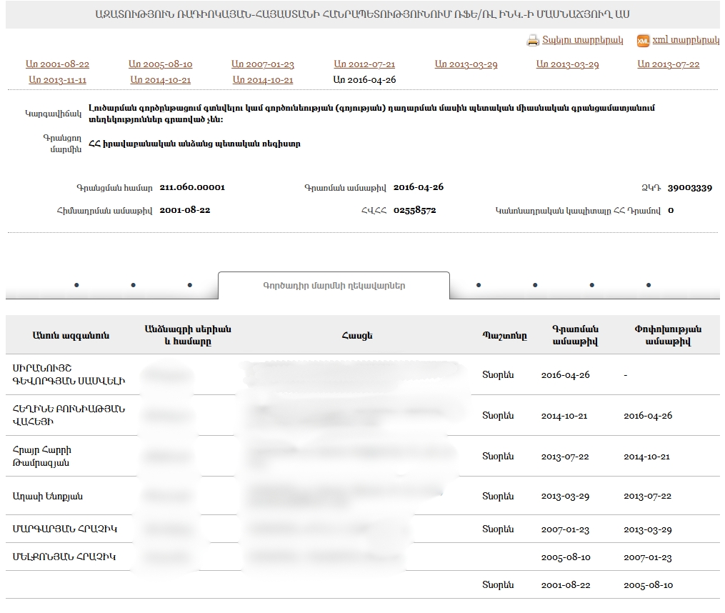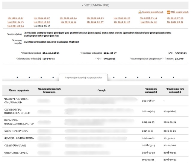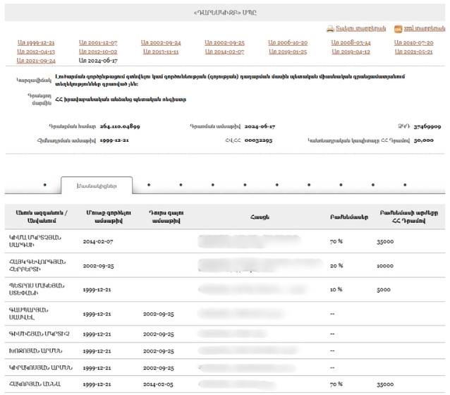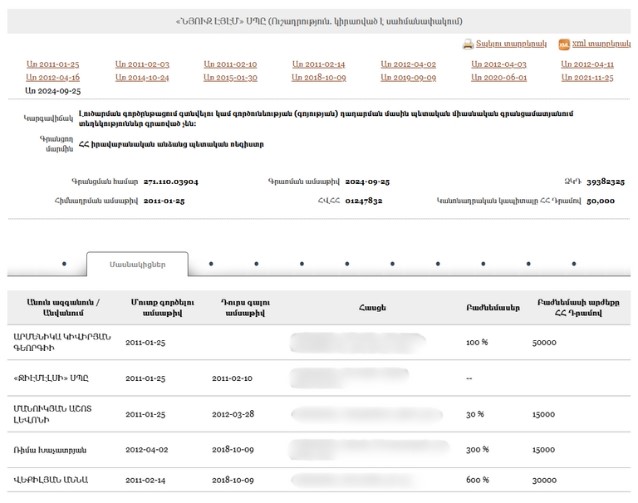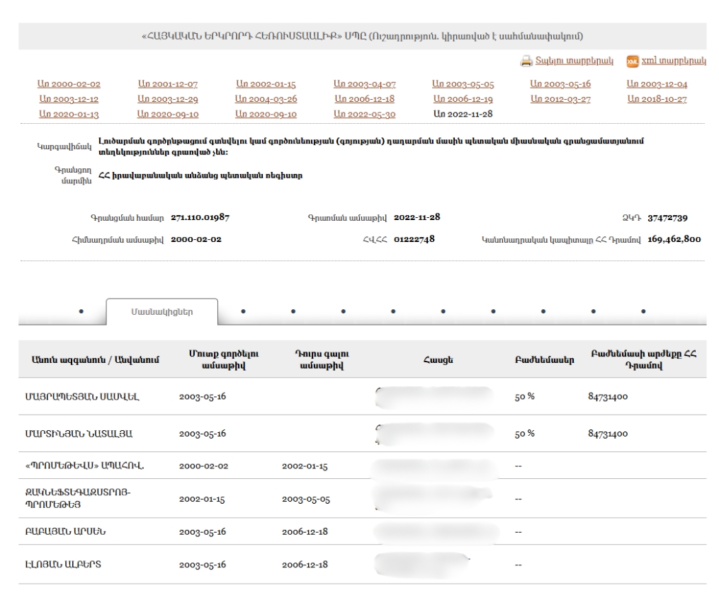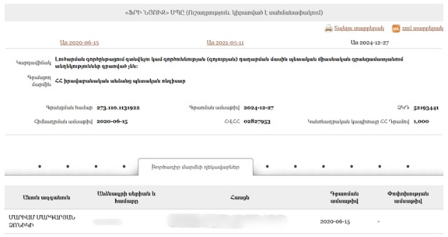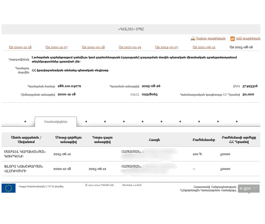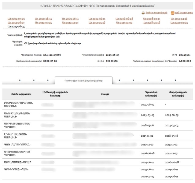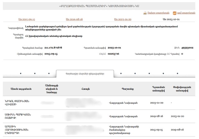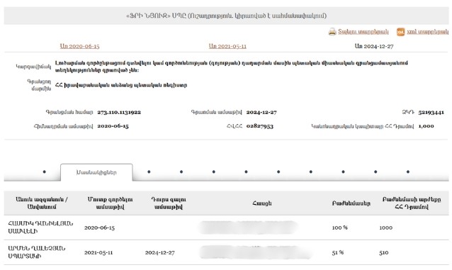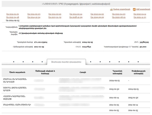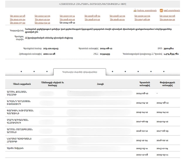 - New Armenia CJSC Beneficial ownership declaration (Armenian) Armenia · 2025Organization