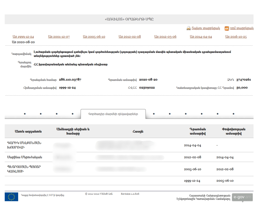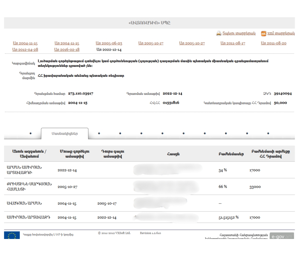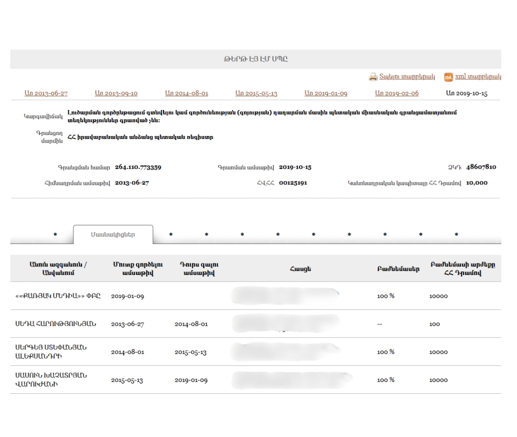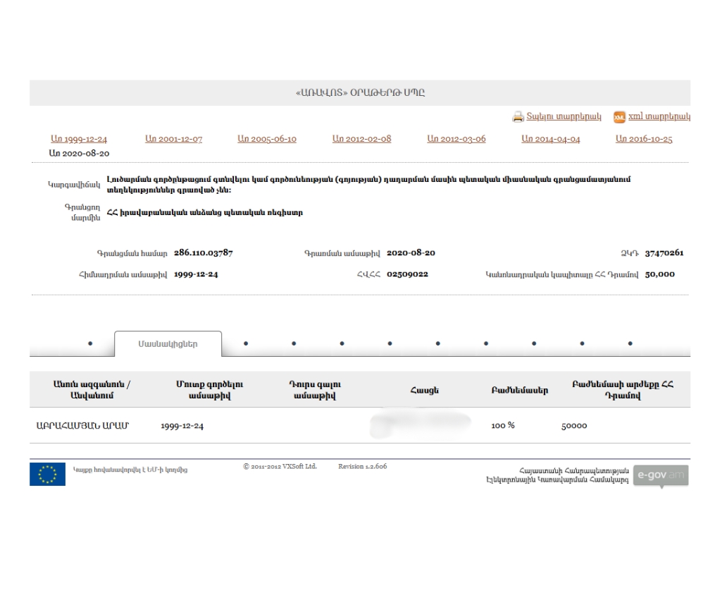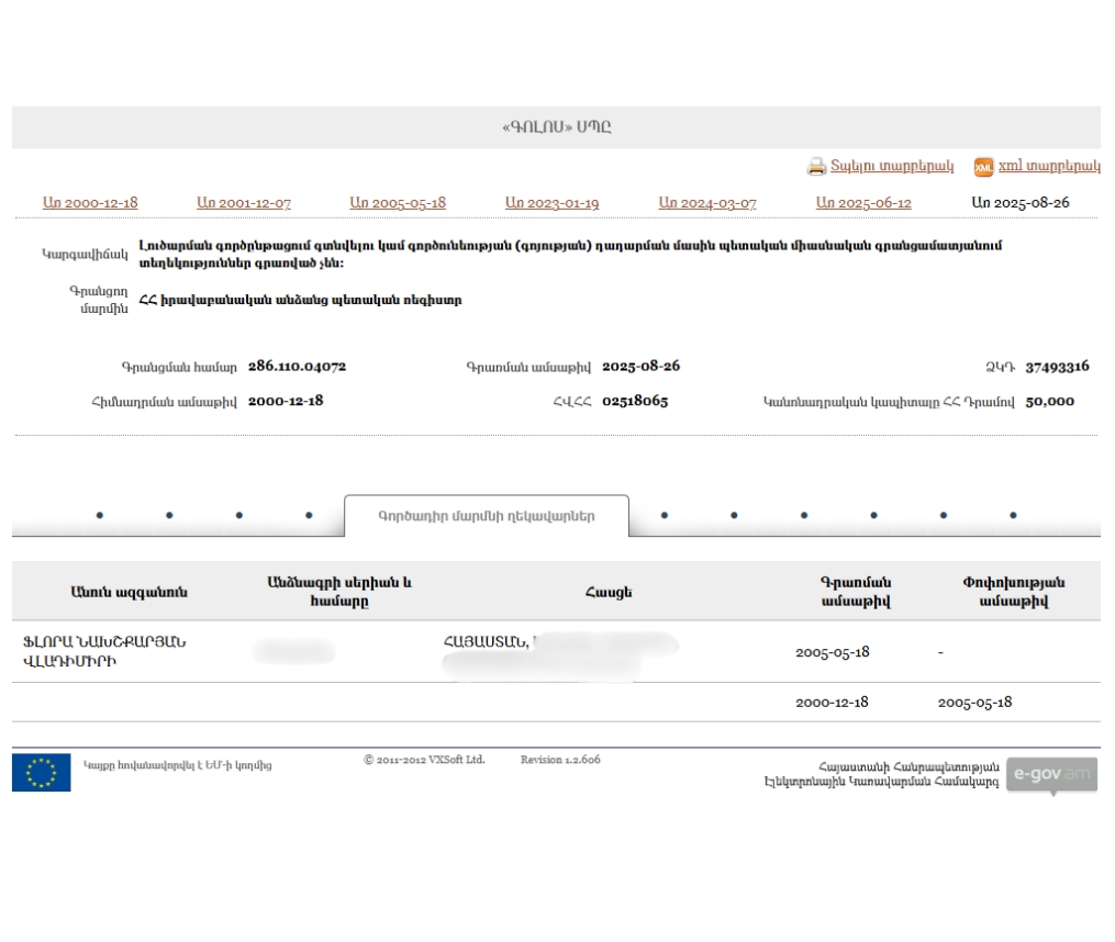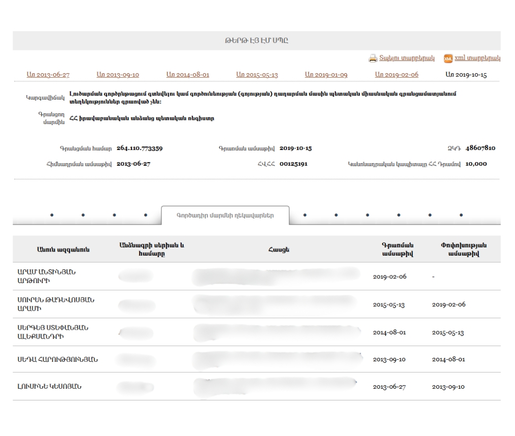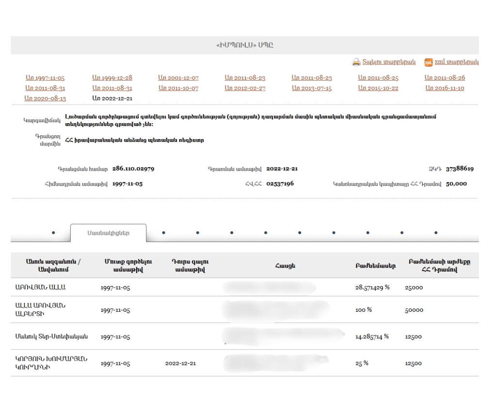 - New Armenia CJSC Beneficial ownership declaration (Armenian) Armenia · 2025Organization
