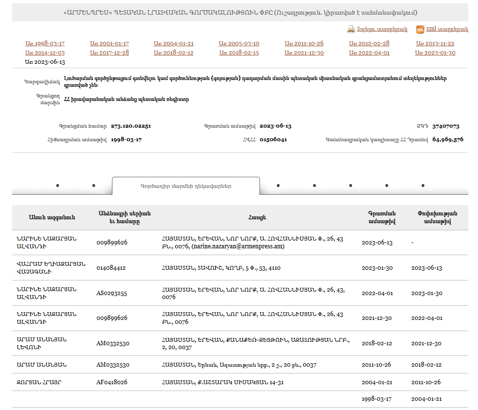 - Free news LLC owners (Armenian) Armenia · 2025Organization