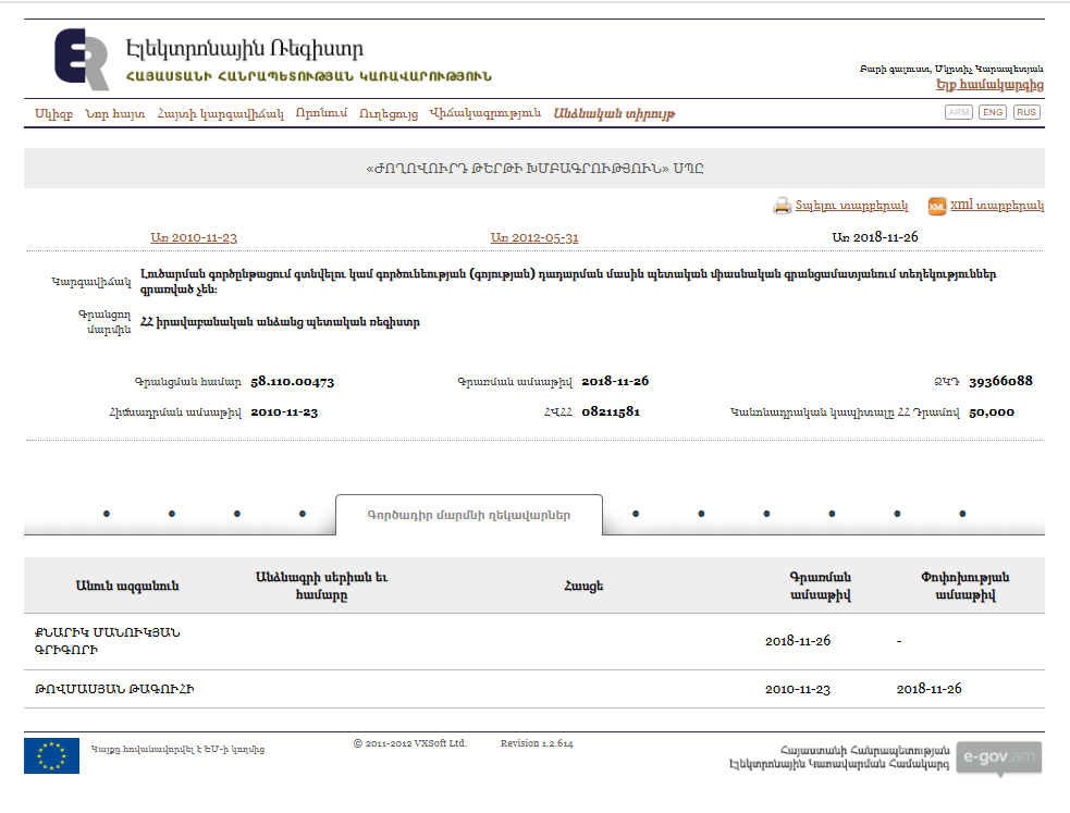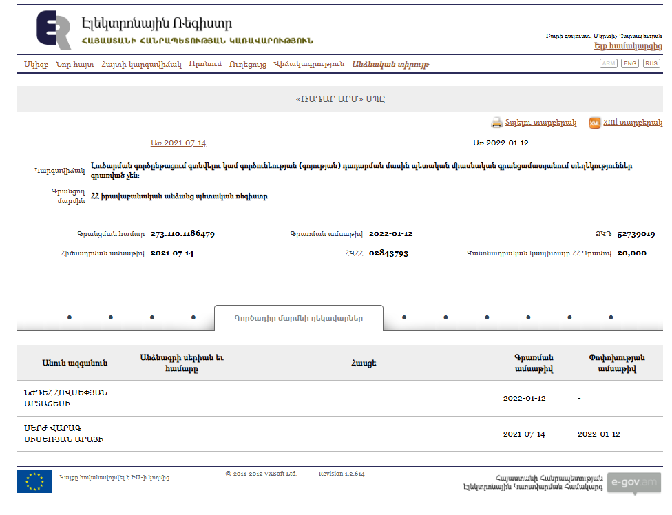 Electronic Register Republic of Armenia