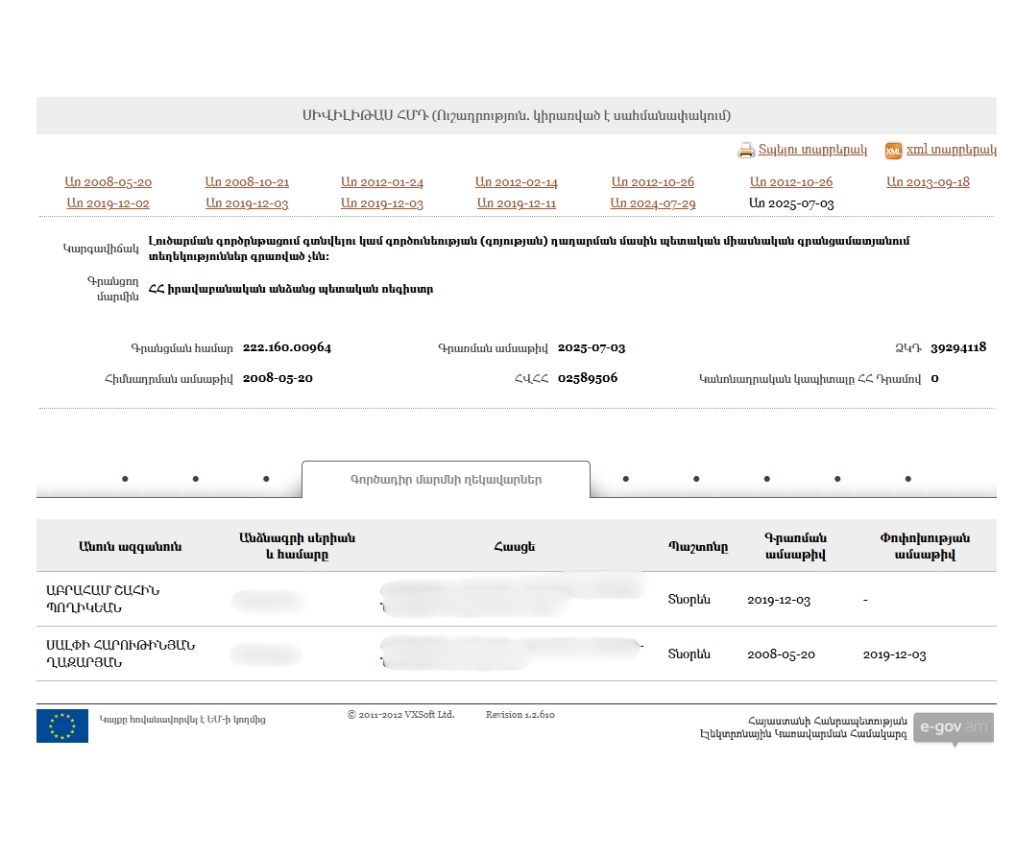 - Iravunk tert LLC Beneficial ownership declaration (Armenian) Armenia · 2025Organization