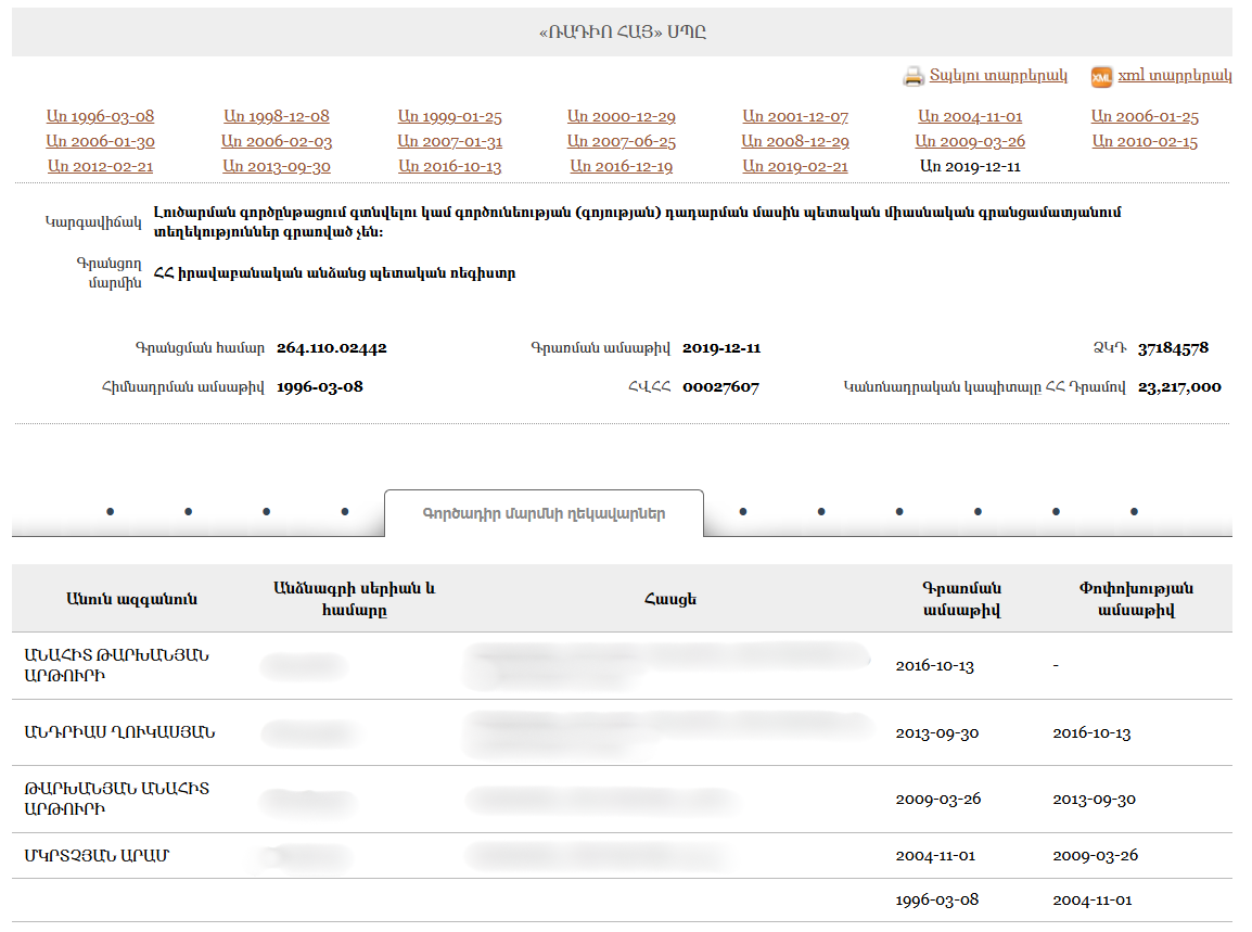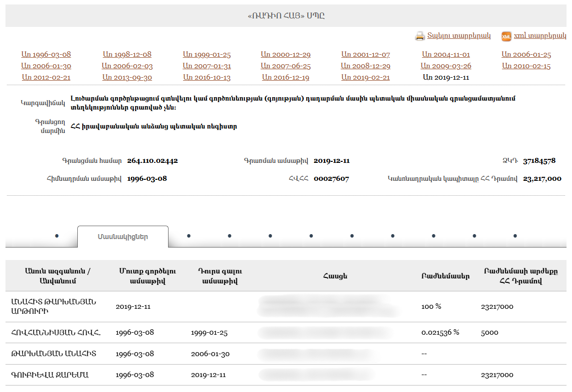 - Public Radio Company of Armenia CJSC profile (Armenian) Armenia · 2025Organization